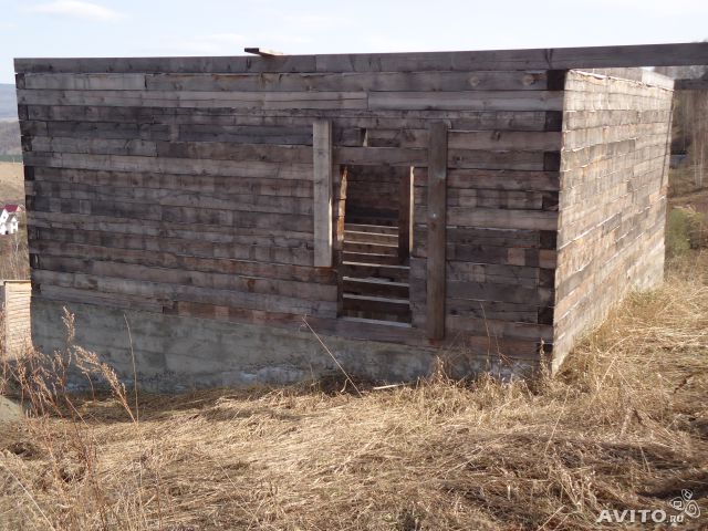 1-этажный недострой 60 м² (брус) на участке 6 сот на Баяте, свидетельство на землю, лиственный, подвальное помещение. Торг, Обмен на авто